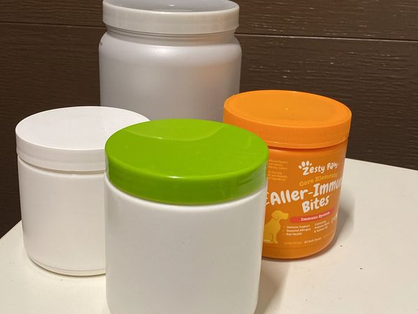 Protein powders, creams and pet vitamins are examples of the many products we buy in these reusable plastic jars.